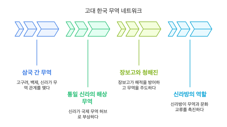 - 신라방의 역할: 당나라에 형성된 신라인 거류지인 신라방은 무역뿐만 아니라 외교, 문화 교류의 거점 역할을 하며 국제 네트워크를 강화했습니다.