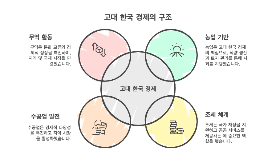 고대 한국 사회의 경제는 국가 형성과 함께 점차 구조화되었으며, 농업을 기반으로 다양한 생산과 교역 활동이 이루어졌습니다. 이 시기의 경제는 물물 교환 중심의 자연 경제적 성격을 지니고 있어, 화폐 사용이 제한적이고 직접적인 물자 교환이 주요 거래 방식이었습니다. 삼국 시대를 거쳐 통일 신라와 발해에 이르기까지 고대 경제는 토지 제도, 조세와 노동, 수공업과 무역 등 여러 분야에서 점진적으로 발전하였습니다. 특히 정치 권력과 밀접하게 연계된 경제 구조는 귀족 중심의 토지 지배와 중앙의 행정 조직을 통해 국가 주도의 경제 운영을 가능하게 했습니다. 이 과정에서 농업 기반 강화, 노동력 통제, 무역 활성화 등 다양한 경제적 특징이 나타났습니다.