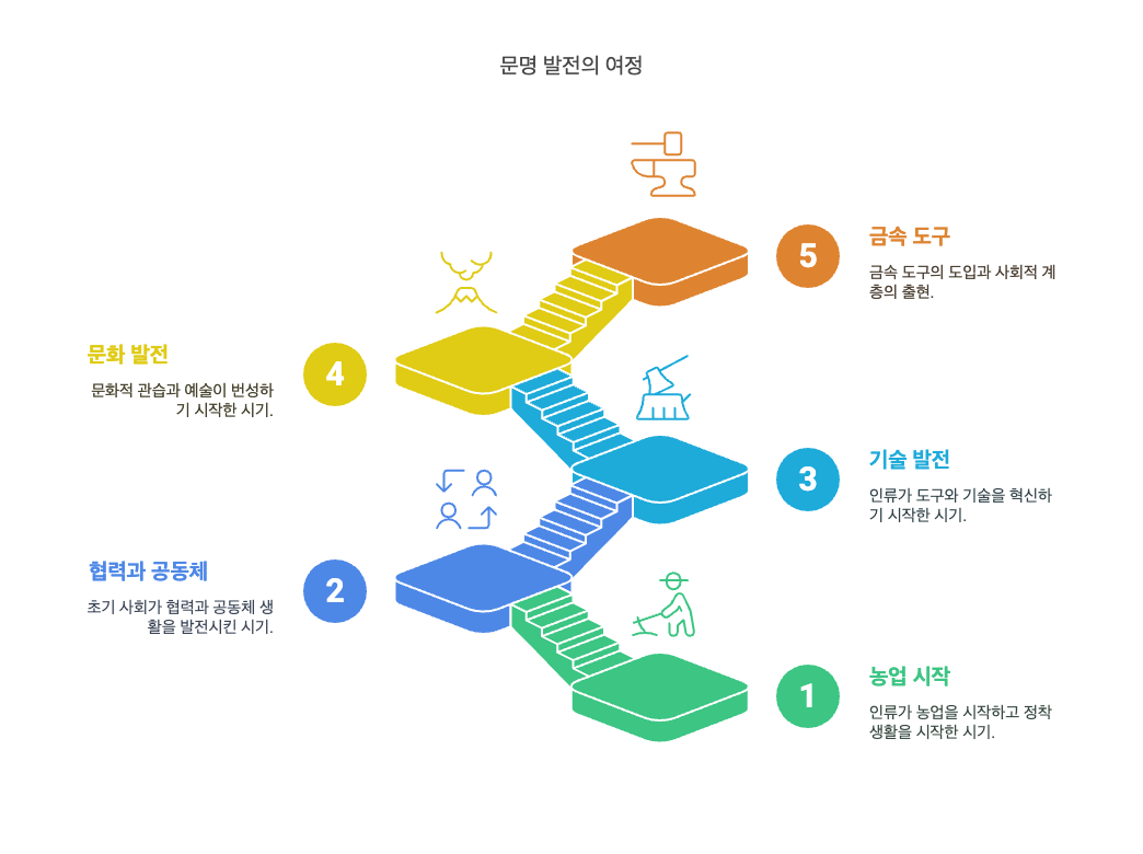 신석기 시대는 인류가 농경과 목축을 시작하며 정착 생활을 하게 된 역사적 전환기의 시기입니다. 약 기원전 8000년경부터 기원전 1500년경까지 이어진 이 시대는 돌을 갈아서 만든 간석기와 토기를 사용하고 식량을 재배하며 살아갔던 시기입니다. 이전 구석기 시대와 가장 큰 차이점은 농업과 정착 생활의 시작입니다.