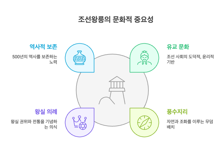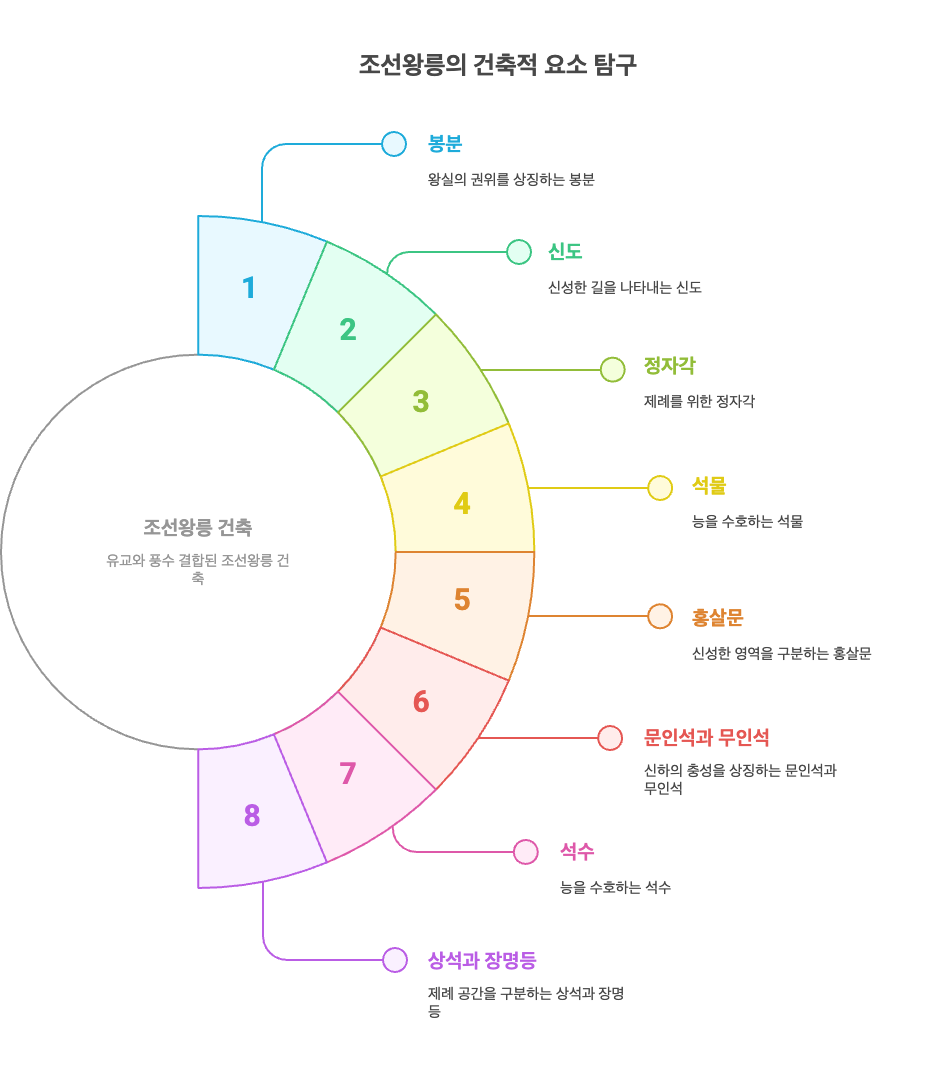 - 이는 명·청대 황릉과 구분되는 조선만의 자연 중심 조형 철학이며, 인간이 자연의 일부로 존재한다는 사상을 시각적으로 구현한 예입니다.