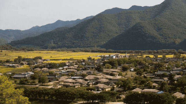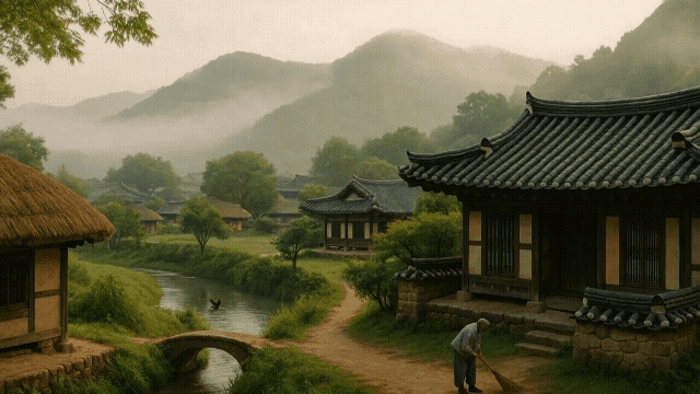 • 집과 자연, 사람과 공간이 하나의 흐름처럼 연결되어 있는 이 풍경은, 마을 어귀에서 장을 담그는 주민의 손길과 대문 앞을 쓸고 있는 노인의 움직임 속에서도 조용히 이어지고 있습니다. 인위적인 개입을 최소화한 조선시대 자연관을 드러내며, 오늘날 지속가능한 공간 설계에 대한 통찰도 제공합니다. 단순한 아름다움을 넘어서 생태와 정신, 문화가 공존하는 설계철학이 스며있습니다.